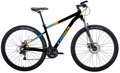 Горный велосипед на 27.5-дюймовых колесах TRINX M116 Elite 27.5. Алюминиевая рама, амортизационная вилка, 21-скоростная трансмиссия, дисковые механические тормоза, двухстеночные обода.